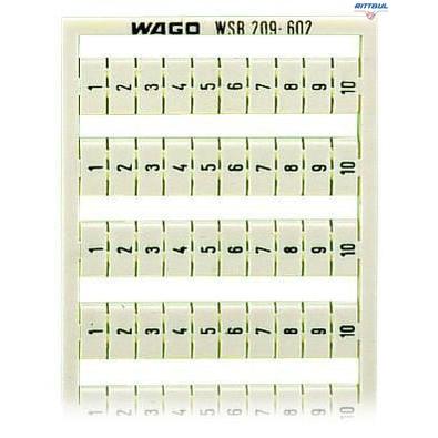 WAGO 209-602 Маркировъчна карта WSB; като карта; МАРКИРАНО; 1 ... 10 (10x); неразтегателни; Вертикално маркиране; тип закрепване чрез закопча - Rittbul