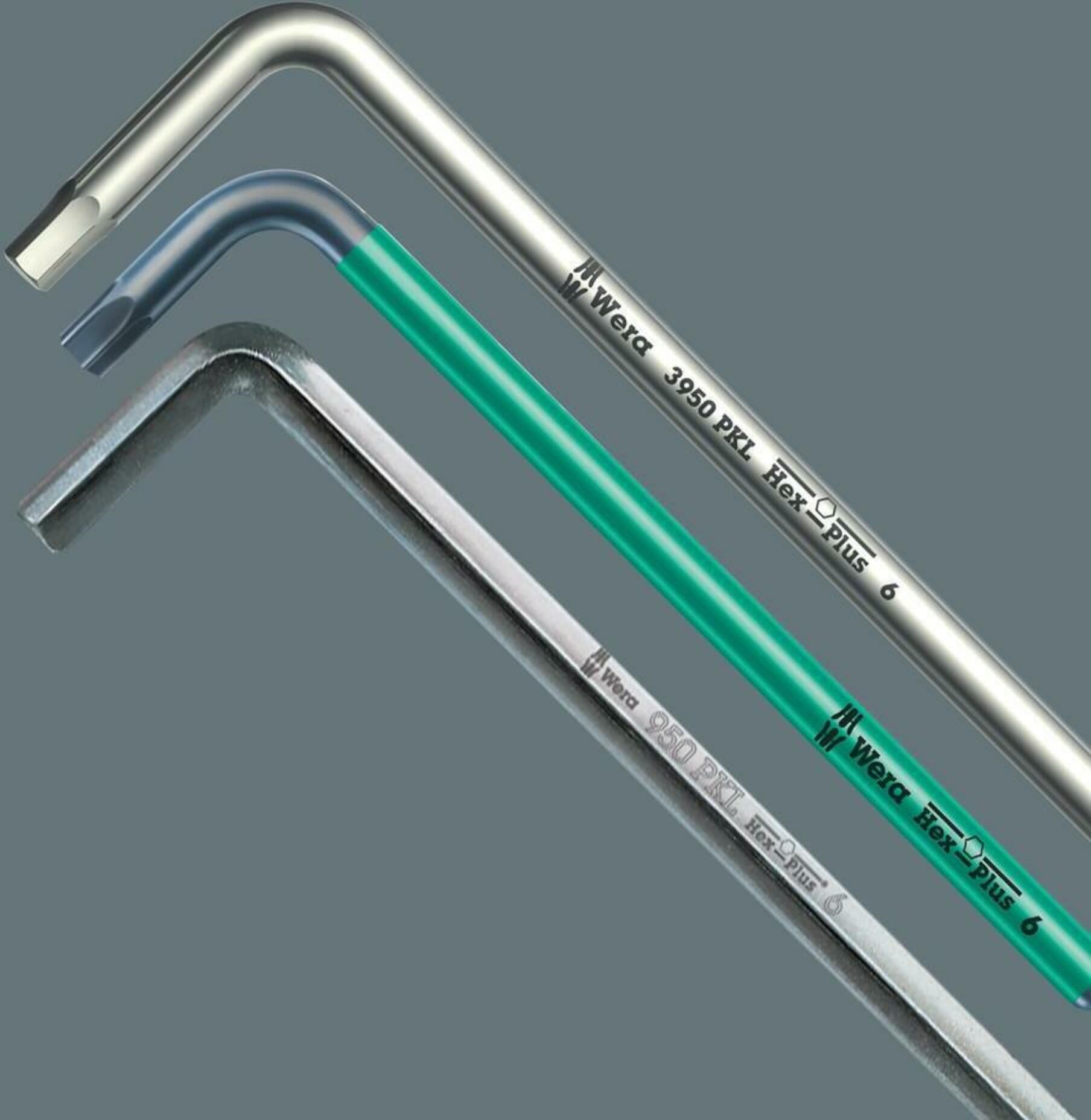 Висококачествени Г-образни ключове за шестостенни винтове с вътрешен шестостен. Hex-Plus предлага по-голяма контактна повърхност в главата на винта. Това намалява ефектите на назъбване до минимум и почти напълно елиминира риска от разрушаване на вдлъбнатината на винта. Сферичният край на дългото рамо позволява надеждна работа дори в трудни монтажни ситуации. Повърхностната обработка BlackLaser осигурява отлична защита на повърхността, дори срещу корозия, и дълъг експлоатационен живот. Инструментите са бързо под ръка благодарение на лазерно гравираните и следователно устойчиви на износване маркировки за размер на Г-образните ключове.