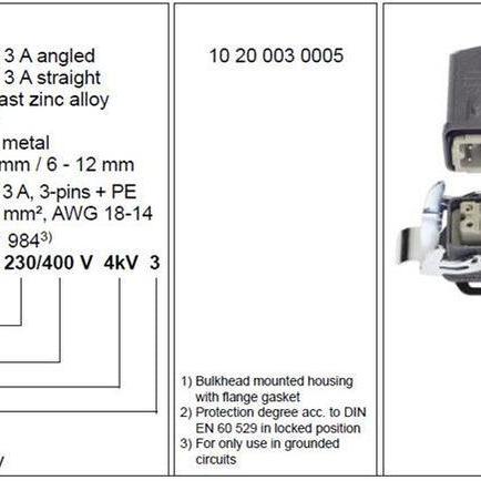 HARTING 10200030005 Комплект индустриален конектор, 4 пинов, ъглов държач Han-KIT 3AWSM