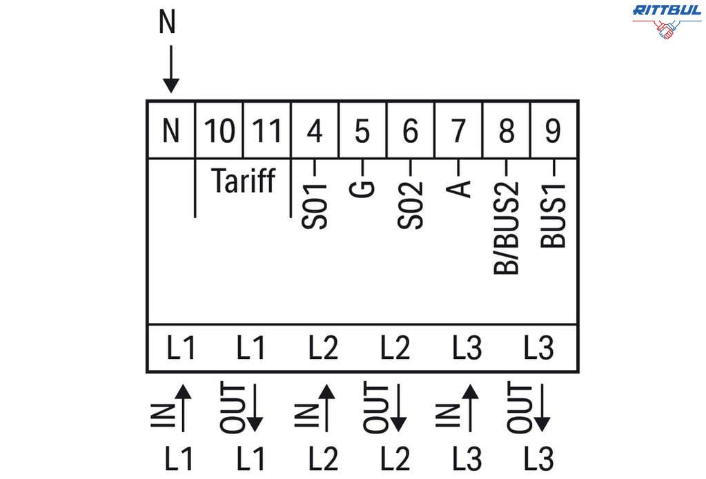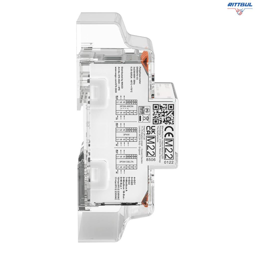 Електромер WAGO 879-3000 за директно свързване; 65A; 3x230/400V; 50Hz; Modbus® и M-Bus; 2 x S0 interface; 4PU