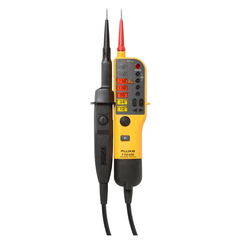 Тестер за напрежение с превключваем товар Fluke T110 е електрическият тестер, който липсва в колана ви с инструменти. Това е тестер за напрежение и тестер за непрекъснатост в един инструмент.