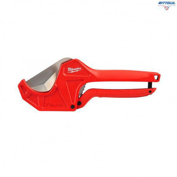 Ножица за PVC тръби MILWAUKEE 4932464173 до 63 мм е с устойчиво острие от неръждаема стомана (може да бъде сменяно). Ножицата е подходящ за PVC, CPVC, PEX, PP, PB, PVDF, PE тръби с диаметър до 63 мм. Резачката е с метален заключващ механизъм.