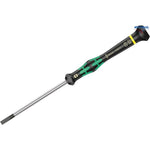 2035 Отвертка за шлицови винтове за електронни приложения, 0,40 x 2 x 40 mm е първокласна отвертка Wera Micro за прецизни механични приложения. Чрез поддържане на ръката върху въртящата се капачка и поради бързо въртящата се зона под въртящата се капачка е възможно светкавично бързо завъртане. Елиминирано е отнемащото време превключване на ръцете. Силовата зона с интегрирани меки зони осигурява предаването на високи моменти на затягане и разхлабване. Прецизна зона за правилни ъгли на въртене при регулиране. Накрайникът Wera Black Point предлага точност на закрепване и оптимизирана защита от корозия. Take it easy търсач на инструменти с щамповане на размера и цветно кодиране по профил за бързо и лесно идентифициране на необходимия инструмент.