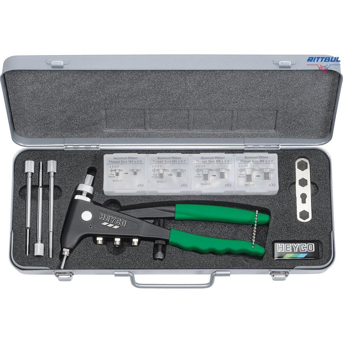 HEYCO 01261000100 Ръчна нитачка за нит гайки комплект в метална кутия