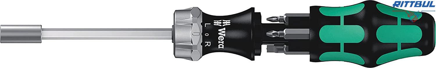 Отвертка-ръкохватка с тресчотка и битове Wera Kraftform Kompakt Pistol RA-R 1 - в калъф с 6 бита