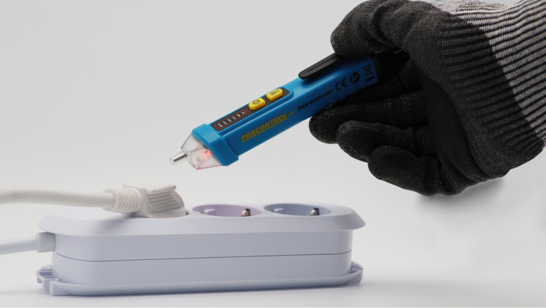 PAN Voltfinder е безконтактен тестер за напрежение за професионална употреба в електрически инсталации. Той надеждно открива променливи напрежения в диапазона от 12 до 1000 V (50/60 Hz) и излъчва акустичен и оптичен сигнал при засичане на напрежение. Тристепенен LED дисплей визуализира интензитета на напрежението.