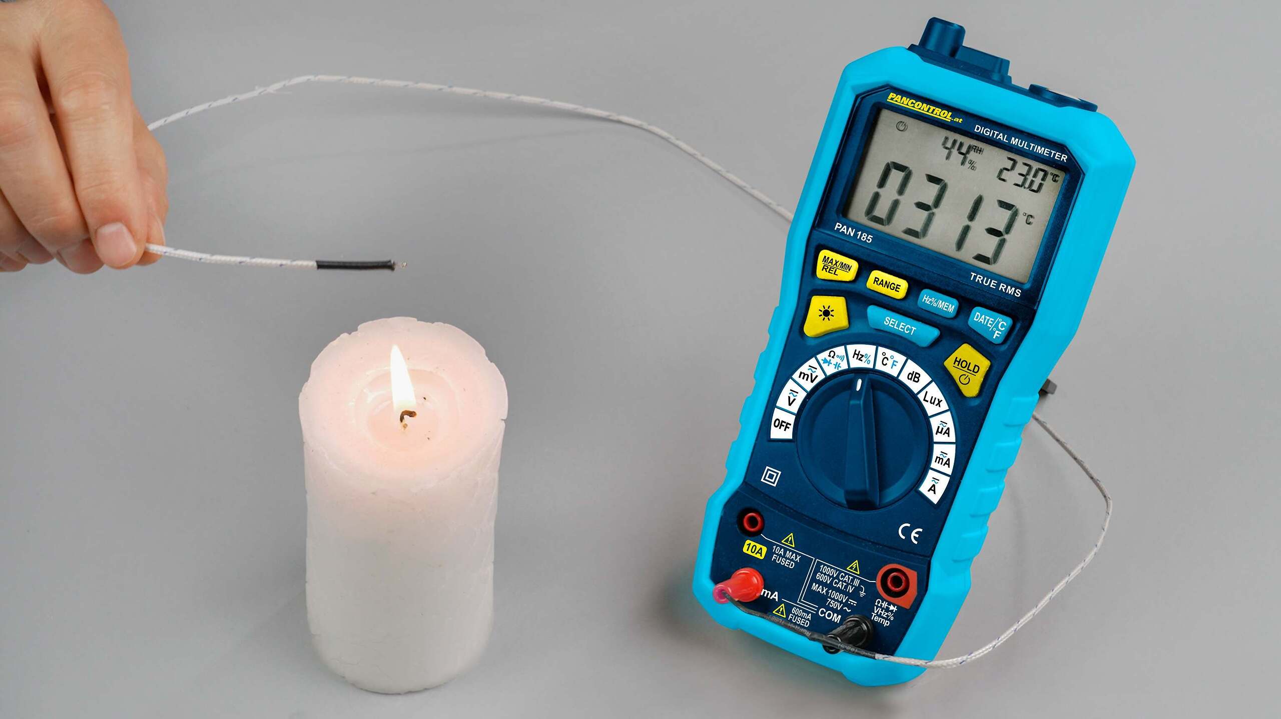 Благодарение на True RMS технологията, PAN 185 измерва надеждно дори при изкривени сигнали. Автоматичният и ръчен избор на обхват, измерването на относителна стойност и функцията max/min осигуряват прецизни оценки. Осветеният дигитален дисплей с височина на цифрите 20 мм и допълнителен дисплей за температура и влажност позволява ясно представяне на всички съответни стойности.